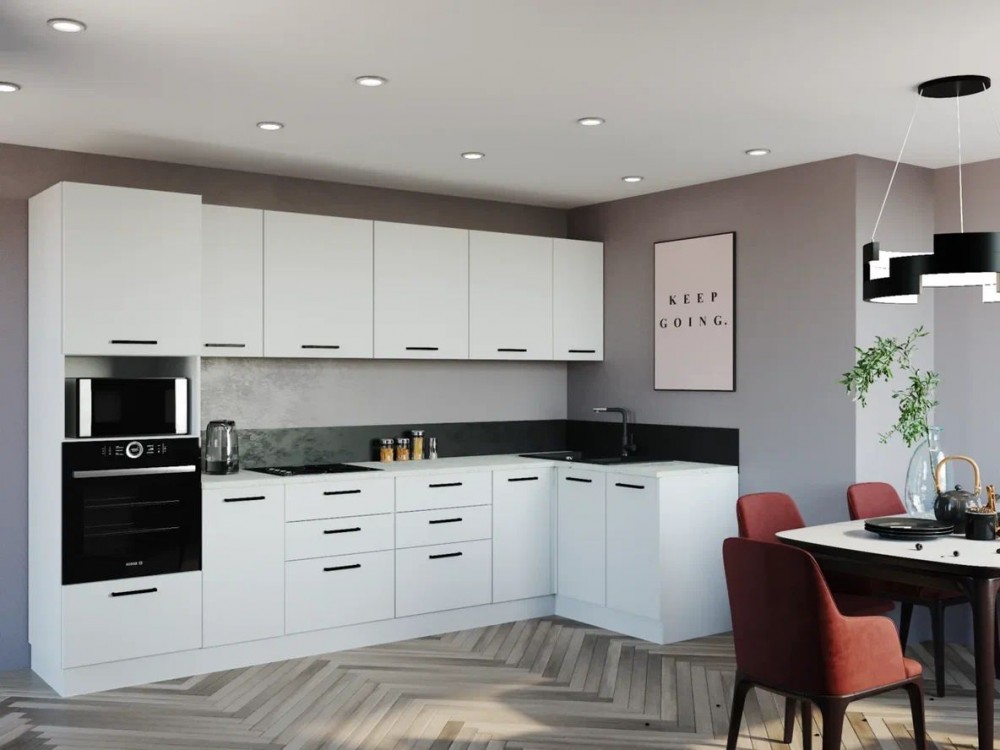 Кухонный гарнитур Белый Глянец 3200*1400 (Стол. 38мм) Верх Корпус: Белый Верх Фасад: Белый Глянец (№301) МДФ Низ Корпус: Белый Низ Фасад: Белый Глянец (№301) МДФ Столешница: Мрамор Марквина белый Описание: Корпус ЛДСП 16 мм, кромка ПВХ 0,4 мм. Фасады ЛДСП 16 мм, кромка ПВХ 1мм. Фасады МДФ 16 мм Фасады верхних модулей со свесом 12 мм дают возможность использовать без установки ручек. Петли с доводчиком. Навесы внутренние, регулируемые, с декоративной крышкой. Направляющие шариковые полного, плавного выдвижения с нагрузкой до 30 кг. Столешницы цельные с пластиковым покрытием со скруглением по переднему краю (постформинг толщина 38 мм). Регулируемые ножки-опоры.