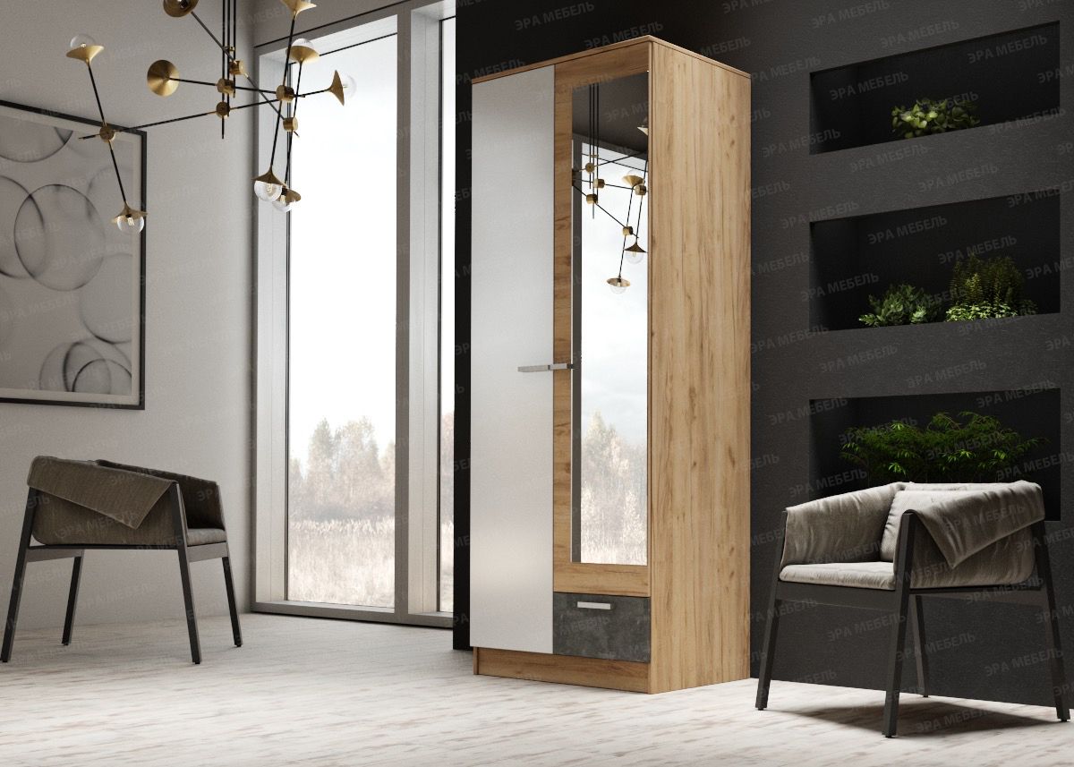 Интернет-магазин "Мебель 24" рад предложить Шкаф Адель 800 с полками (дуб вотан/белый глянец) по привлекательной цене, от производителя ЭРА (Пенза).